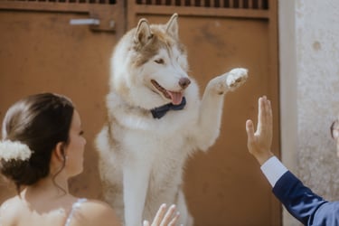 Basándonos en que cada perro es un mundo y tiene su propia idiosincrasia para gestionar diferentes escenarios de este día, vamos a planificar previamente de qué manera estará vuestro peludo presente en vuestra boda, averiguando como es y entendiendo vuestras peticiones.