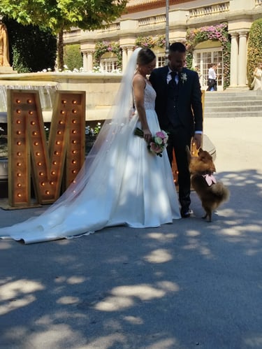 El dia de la nostra boda volíem que els nostres gossos fossin allà però també que estiguessin cuidats i còmodes, per això quan vam conèixer la Núria no ho vam dubtar. Mai hem deixat amb ningú als bebés, però sens dubte que la Núria formés part del nostre casament va ser tot un encert. Ells la van adorar i nosaltres els vam poder tenir allà sense patir. Moltissimes gràcies Núria!!!